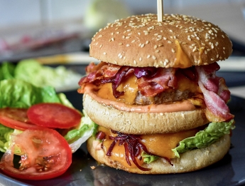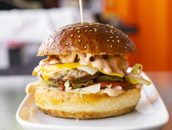 With scrambled eggs, tomatoes, mushrooms, green peppers, red onions, & spinach. Topped with 3 cheeses & served with a side of hollandaise.